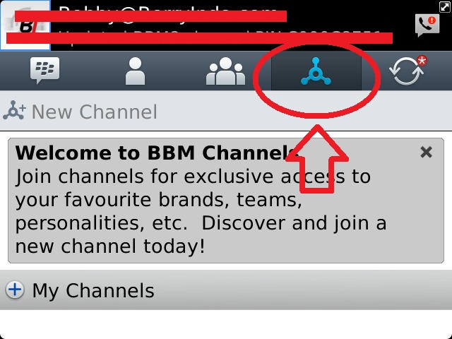 1. Buka aplikasi BBM Anda, lalu pilih “saluran (channels)” di menu kiri BBM.