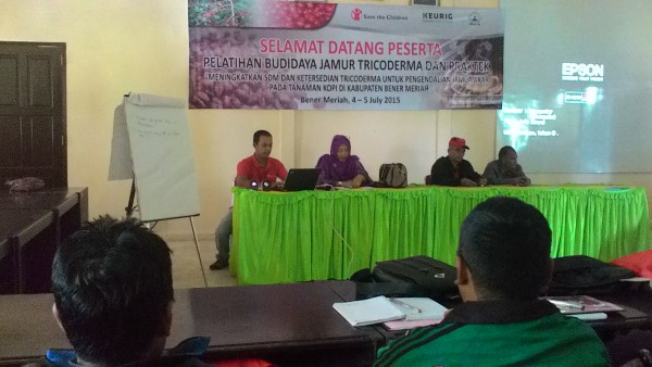 Untuk itu, Save the Children district Bener Meriah bekerja sama dengan Pemkab. setempat, melalui program LINK 2, mengadakan pelatihan terhadap 35 orang yang berasal dari 12 instansi terkait, dengan harapan agar peserta pelatihan tersebut dapat melakukan budi daya jamur ticoderma sehingga ketersediaan pembasmi penyakit tanaman kopi itu dapat di olah sendiri oleh para petani, sebut panitia penyelenggara Imran Ali dari Project Officer Livelihood LINK Save the Children.