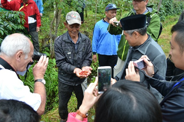 Terlihat tim SCAE yang di ketuai oleh Collin Smith tambak berbincang-bincang dengan pemilik kebun, disana rombongan negara eropa itu banyak mempertanyakan persoalan mengenai kebun kopi organik, beberapa tim mencicipi buah kopi organik. “Sweet (manis),” kata salah seorang rombongan SCAE sembari menawarkan buah kopi merah kepada rekan-rekannya.