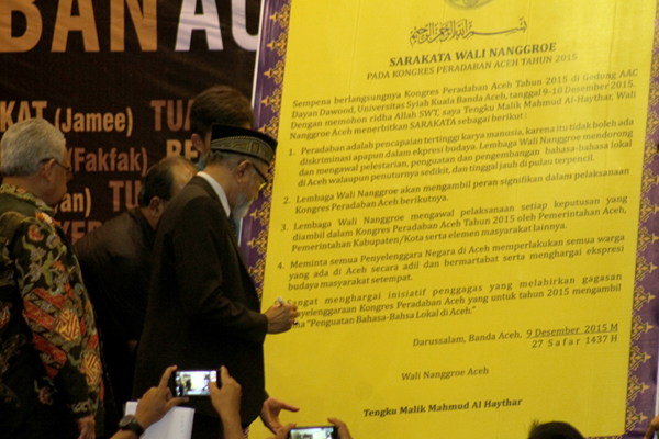 Berikut Isi Lengkap 5 butir “SARAKATA WALI NANGGROE pada Kongres Peradaban Aceh Tahun 2015;
