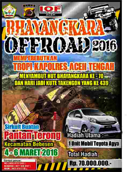 Takengon-LintasGayo.co : Sebagai bentuk dukungan mempromosikan wisata Gayo, Polres Aceh Tengah akan menggelar Bhayangkara Offroad 2016 dengan lokasi kawasan wisata alam dan wisata agro Pantan Terong yang berketinggian diatas 1600 meter diatas permukaan laut (dpl).