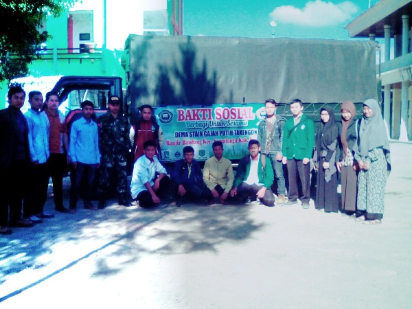 Takengon-LintasGayo.co: Dewan Eksekutif Mahasiswa (DEMA) STAIN Gajah Putih Takengon, Aceh Tengah bersama sejumlah organisasi dalam dan luar kampus menyalurkan bantuan ke para korban bencana banjir bandang di Kecamatan Samalanga, Bireuen.