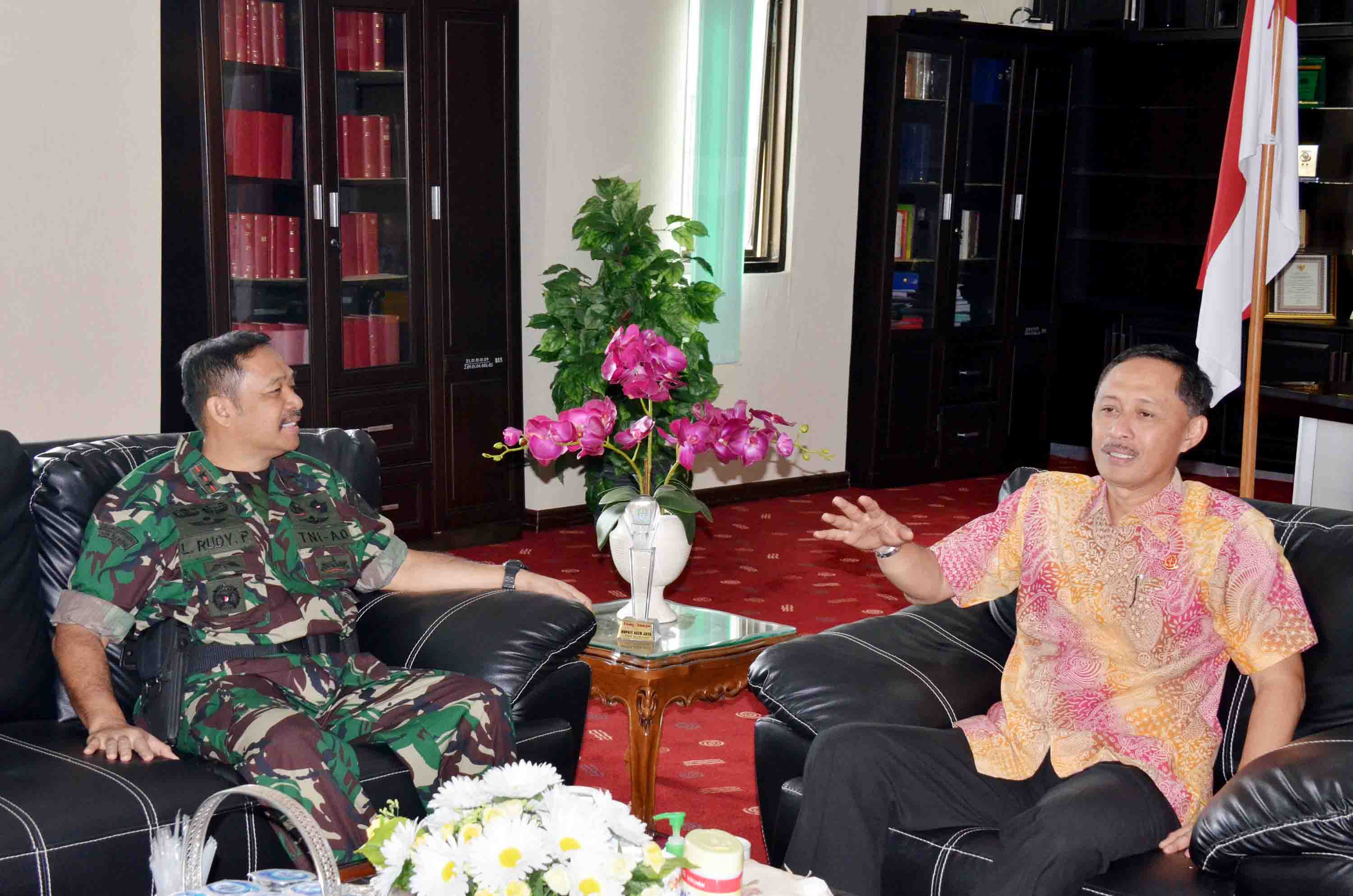 Banda Aceh, Lintasgayo.co : Panglima Kodam Iskandar Muda, Mayjen TNI L Rudy Polandi didampingi Asintel, Kolonel Inf R. Andi Roesdiprijatna Wiradikoesoema, Aster, Kolonel Inf Terry Tresna Purnama dan Waka Pendam Letnan Kolonel Arm E. Dwi Karyono AS, Jumat (26/2/16) pagi, melakukan pertemuan dengan Kepala Kejaksaan Tinggi (Kajati) Aceh, Raja Nafrizal, S.H, M.H di Kantor Kejaksaan Tinggi, Banda Aceh.