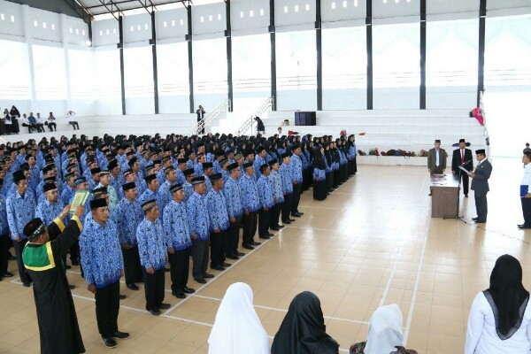 Redelong-LintasGayo.co : Plt Bupati Rusli M Saleh melantik 366 Calon Pegawai Negeri Sipil (CPNS), Honorer katagori 2 (K2) dan formasi khusus dokter Pegawai Tidak Tetap (PTT), 100 persen sebagai Pegawai Negeri Sipil (PNS) Pemerintah Kabupaten Bener Meriah, di Gedung Olahraga Seni (GORS) Simpang Tiga Redelong, Rabu (15/6).