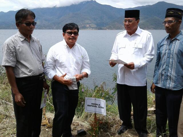 Dalam kesempatan itu, Bupati Aceh Tengah dan Kepala Bapedal Aceh melakukan penanaman pohon di tepi Danau Lut Tawar. (Khalis)