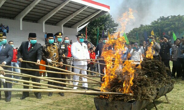 Bupati Aceh Tenggara (Agara) H. Hasanuddin B turut serta dalam prosesi pemusnahan barang bukti narkoba jenis daun ganja kering seberat 55 kilogram diLapangan Stadion H.Syahadat setelah peringatn HUT RI Ke 71.