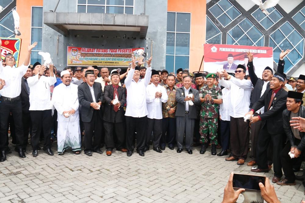 “Untuk menciptakan pelaksanaan pilkada damai, aman, dan sukses, maka pada kesempatan ini mari kita bersepakat untuk mendeklarasikan pilkada damai di Kabupaten Bener Meriah sebagai upaya untuk menyatukan tekad demi terwujudnya pelaksanaan pemilihan kondusif dengan saling menghargai hak sesama peserta pilkada,” pintanya.