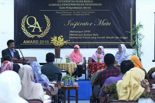 Banda Aceh-LintasGayo.co : Tiga inspirator mutu Universitas Syiah Kuala (Unsyiah) berhasil meraih penghargaan QA Award dalam acara Forum Insipirator Mutu. Kegiatan yang diselenggarakan Lembaga Pengembangan Pendidikan dan Penjaminan Mutu (LP3M) Unsyiah tersebut berlangsung di ruang Flamboyan Gedung AAC Dayan Dawood, Senin (14/11).