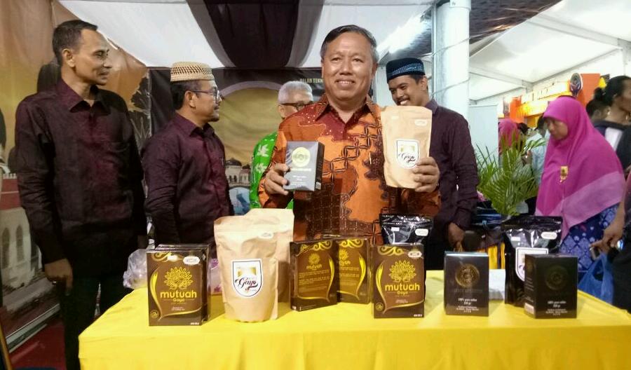 Mataram-LintasGayo.co : Ditengah kesibukannya mengikuti serangkaian agenda pameran Teknologi Tepat Guna (TTG) XVIII nasional, 23 Nopember 2016 di komplek Islamic Center Kota Mataram Propinsi Nusa Tenggara Barat, Plt Bupati Bener Meriah Drs.Hasanuddin Darjo, MM masih sempat mempromosikan kopi Gayo kepada pengunjung.