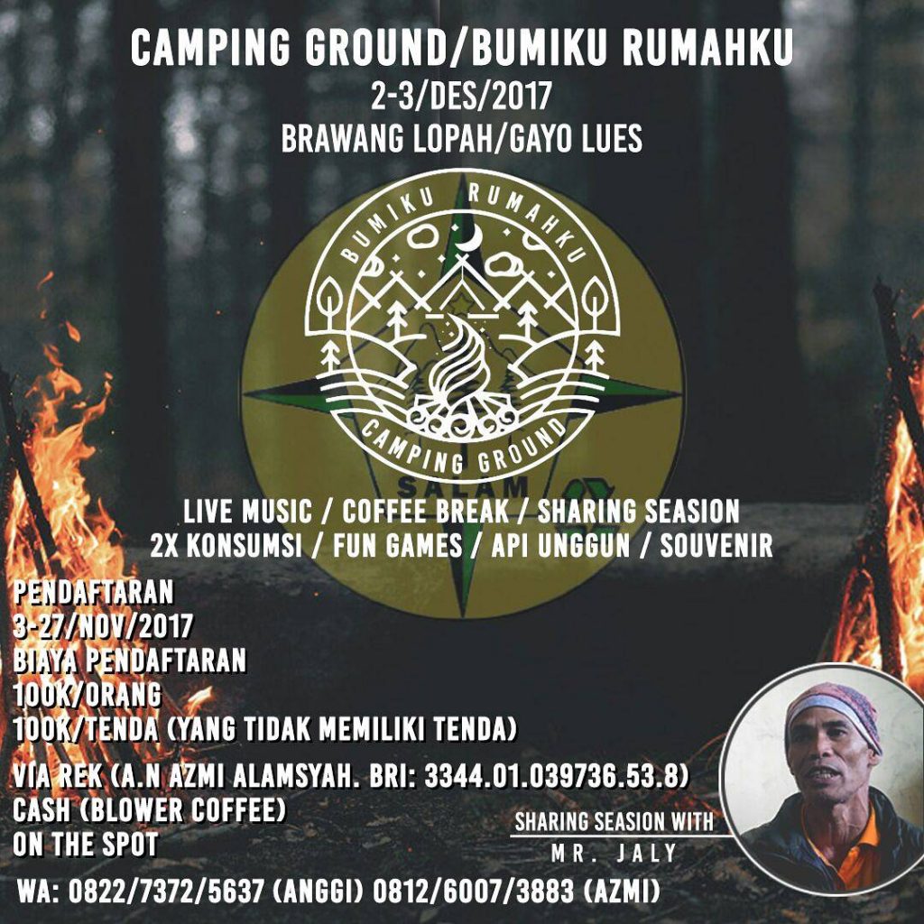 BLANGKEJEREN-LintasGAYO.co: Komunitas Sahabat Alam Gayo Lues menggagas kegiatan Camping Ground di Gayo Lues. Rencananya kegiatan akan digelar mulai 2-3 Desember 2017 di Brawang Lopah, Desa Peparik, Kecamatan Blangjerango, Gayo Lues.