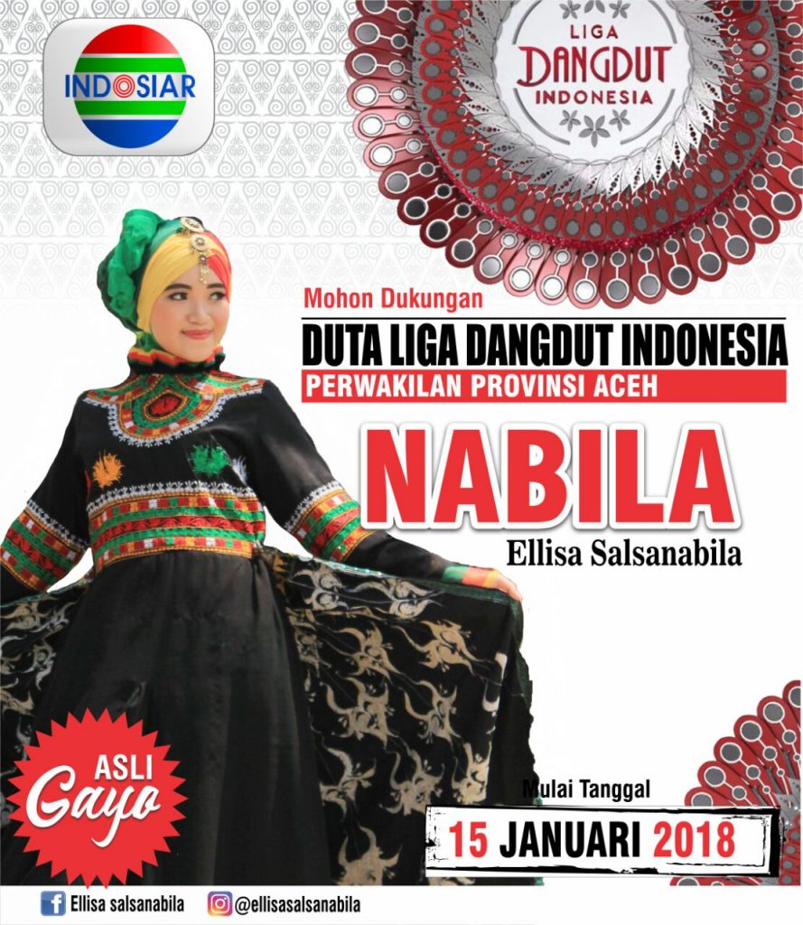 Nah, penasaran bagaimana penampilan Nabila di depan layar kaca? Sebelum tahapan unjuk kebolehan benar-benar dimulai pada tanggal 15 Januari 2018 mendatang, Nabila mendapat kesempatan tampil di acara HUT Indosiar pada tanggal 11 Januari 2018 bersama perwakilan peserta Liga Duta Dangdut seluruh Indonesia. Bagaimana memgenali Nabila? Mudah saja, dipastikan hanya dia yang mengenakan kain Kerawang Gayo.