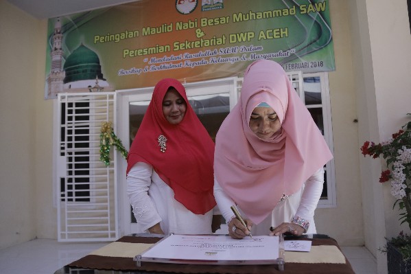 Hal tersebut disampaikan oleh Penasehat Dharma Wanita Persatuan Aceh, Darwati A Gani, dalam sambutannya pada acara peresmian Gedung DWP Aceh yang dirangkai dengan Peringtan Maulid Nabi Muhammad Salallahu ‘Alaihi Wassalam, di kawasan Lampineung, Selasa (6/2/2018).