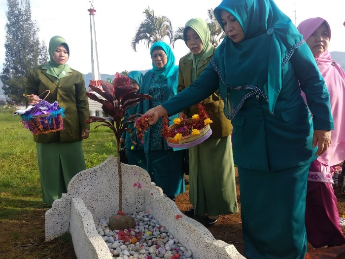 Upacara ziarah tersebut dipimpin langsung oleh Ketua TP-PKK Aceh Tengah Puan Ratna, Sabtu pagi (22/12/2018), dihadiri juga Wakil Ketua TP-PKK Nurmaini, Ketua Dharma Wanita Persatuan Asmawiyah, Ketua GOW Rahmawati dan beberapa pimpinan organisasi wanita lain.