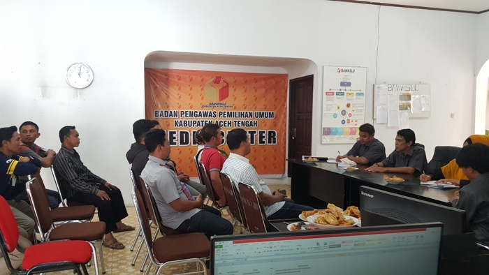 TAKENGON-LintasGAYO.co : Forum Caleg di Kabupaten Aceh Tengah akhirnya dapat menyampaikan kegelisahannya terkait adanya penginputan data C1 yang dilakukan delapan orang di salah satu penginapan di Paya Tumpi beberapa waktu lalu, yang kemudian keberadaannya terendus oleh tim Gakkumdu Pemilu , kepada Komisioner Panwaslih Aceh Tengah, Selasa sore 23 April 2019.