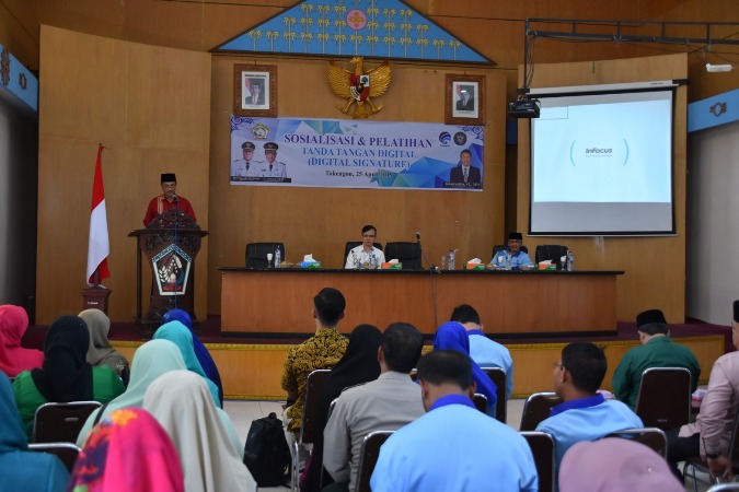 Sosialisasi digital signature yang dilaksanakan sehari itu merupakan upaya percepatan Implementasi Penyelenggaraan Sistem Pemerintahan Berbasis Elektronik (SPBE).
