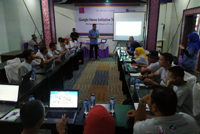 BIREUEN-LintasGAYO.co : Aliansi Jurnalis Independen (AJI) Bireuen bekerja sama dengan Google News Initiative dan Internews mengadakan pelatihan penangkalan terhadap hoax. Training ini berlangsung dua hari yakni Sabtu dan Minggu (7-8/9/2019) di Meuligoe Hotel, Cot Gapu Bireuen.