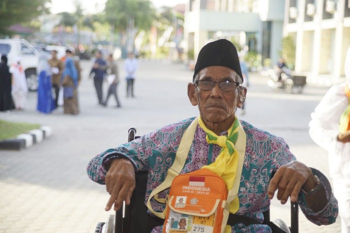 “Mat Budin lahir tanggal 13 mei 1920. Beliau jemaah tertua tahun ini. Umurnya 99 tahun. Bekerja sebagai petani dan tinggal di Dusun Jembatan Desa Juar Kecamatan Sekerak,” kata Nasril yang juga juru bicara PPIH embarkasi Aceh.