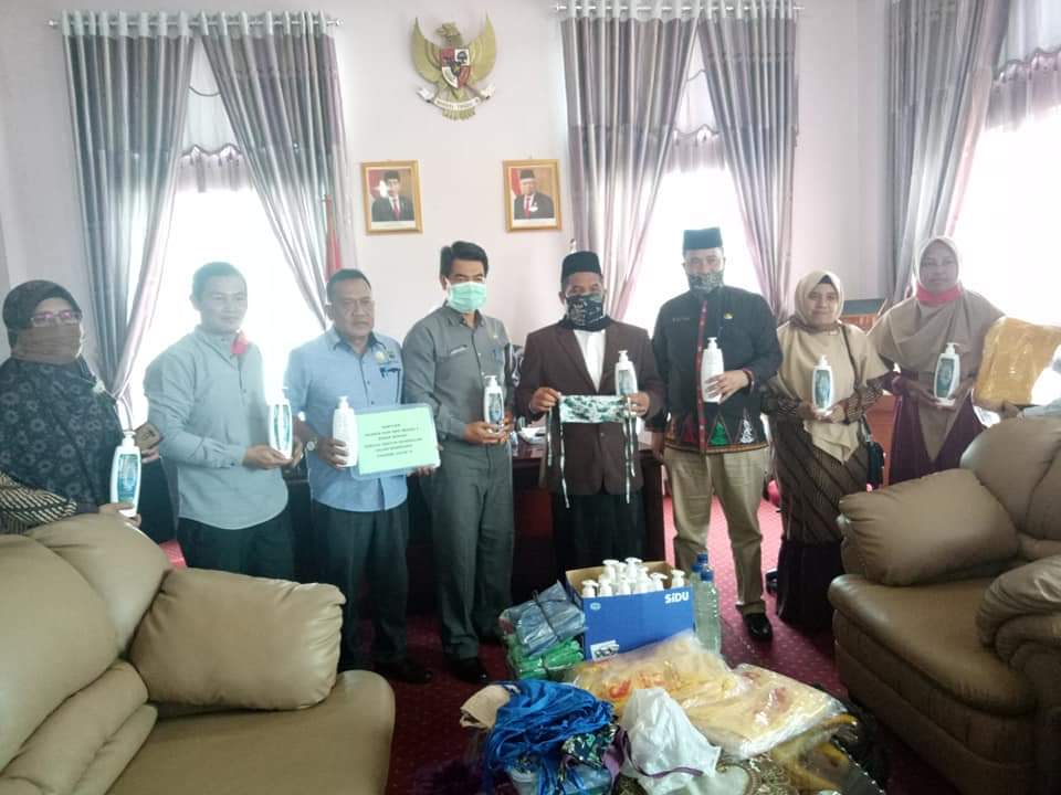 REDELONG-LintasGAYO.co : Bupati Bener Meriah, Abuya Tgk. H. Sarkawi didampingi Sekda Haili Yoga dan Ketua Tim Gugua Tugas Percepatan Penanganan Covid-19, Abdul Kadir menerima hand sanitizer racikan para guru Kimia di daerah tersebut, Jum’at 27 Maret 2020.