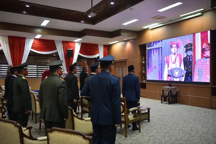 Upacara di Istana Kepresidenan itu, juga diikuti oleh seluruh kepala daerah dan Forkopimda dari seluruh Indonesia.