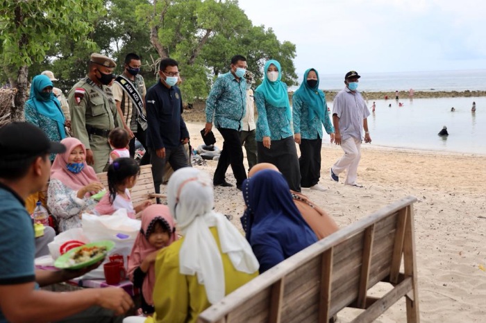 Dyah berkunjung ke Pantai Pasir Putih Lhok Mee, Gampong Lamreh, Kecamatan Masjid Raya, Kabupaten Aceh Besar, Minggu, (1/11/2020). Ia datang bersama Tim Penggerak PKK Aceh dan Kabupaten Aceh Besar, Juru Bicara Satgas Covid-19 Aceh, Tim Dinas Kebudayaan dan Pariwisata Aceh serta Tim Satpol PP WH.