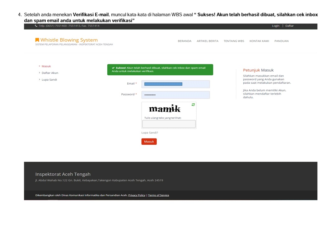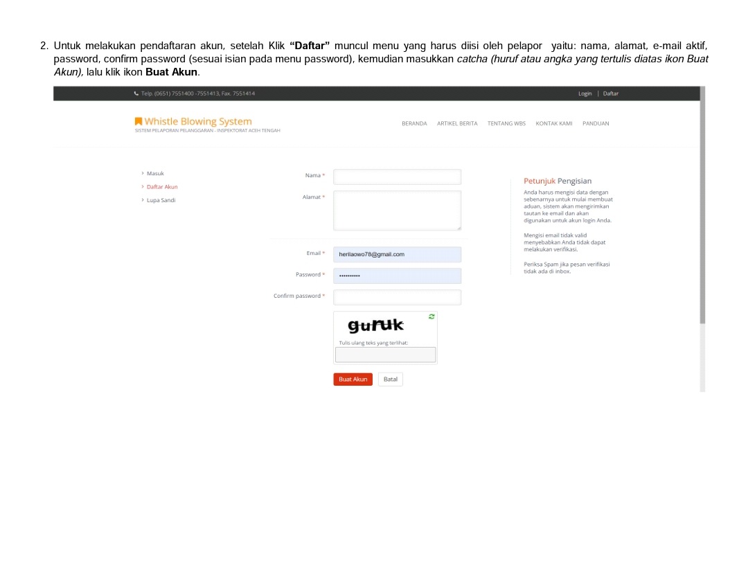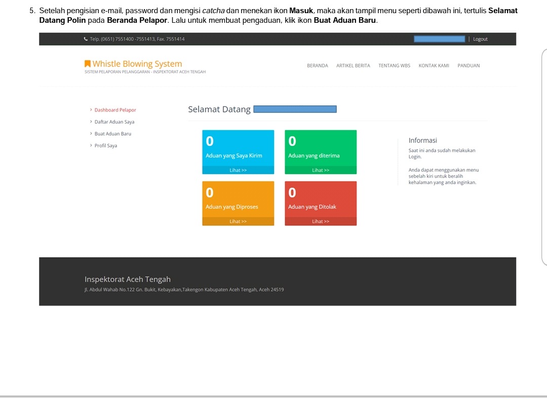 “Setiap pelapor harus membuat akun terlebih dahulu dengan mengklik tombol daftar di situs. Setelah proses pendaftaran, maka pelapor kedudian mengklik tombol login untuk masuk,” katanya.