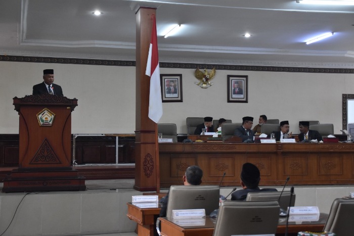 Mewakili Pemerintah Eksekutif Kabupaten Aceh Tengah, Sekretaris Daerah Kabupaten Aceh Tengah Subhandhy, AP, M.Si, tampak menghadiri, sekaligus memberikan sambutannya dalam Sidang Paripurna yang digelar di Ruang Sidang Gedung DPRK Aceh Tengah, pada Selasa (30/11/21).