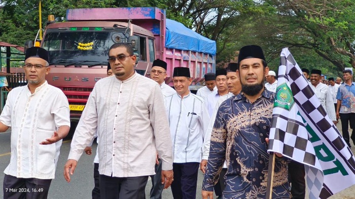 ACEH BESAR-LintasGAYO.co : Dalam rangka menyambut bulan suci Ramadan, Kantor Kementerian Agama Kabupaten Aceh Besar menggelar pawai tarhib Ramadan, Kamis, 7 Maret 2024, siang.