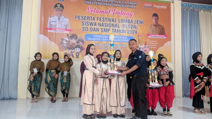 Di cabang tari kreasi, siswa SD Swasta 1001, berhasil meraih juara 1. Kegiatan FL2SN tingkat SD sendiri berlangsung di Aula Dinas Pendidikan Aceh Tengah, Selasa 14 Mei 2024.