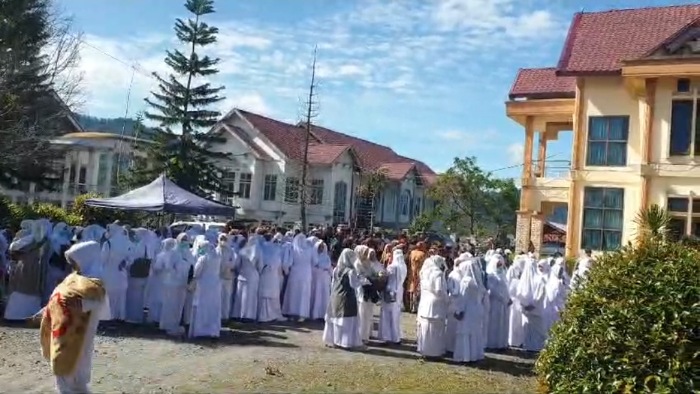 Pantauan, ratusan tenaga non-ASN ini mendatangi DPRK Bener Meriah dengan menggunakan pakaian dinas masing-masing.