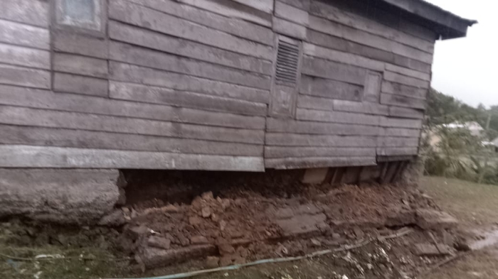 Dari pantauan di lokasi, retakan besar terlihat jelas di dinding rumah dengan sebagian pondasi sudah ambruk. Keluarga Abdul Karim kini harus berjibaku dengan ketidakpastian, terlebih dengan ancaman cuaca ekstrem yang diprakirakan masih akan berlanjut.