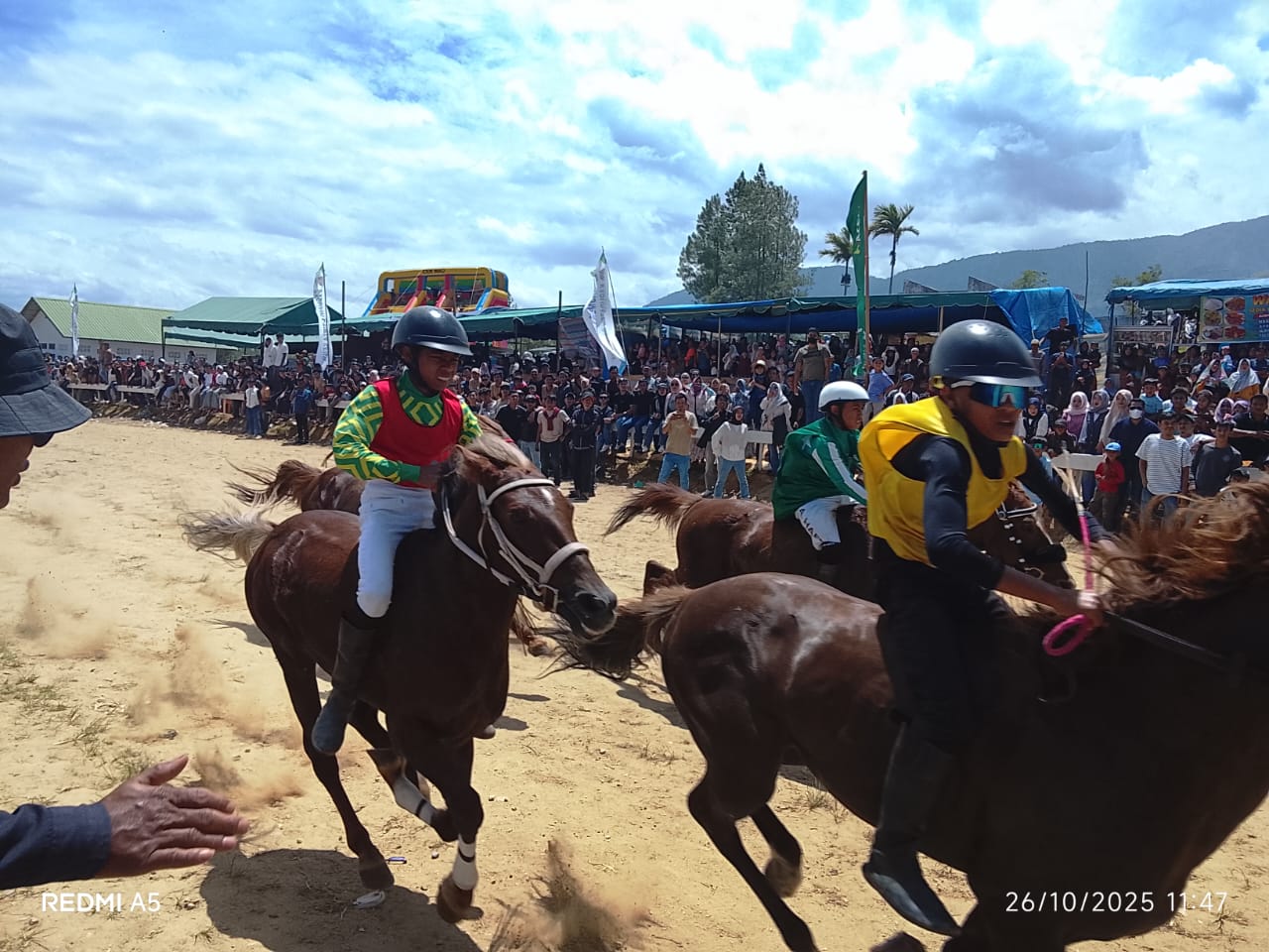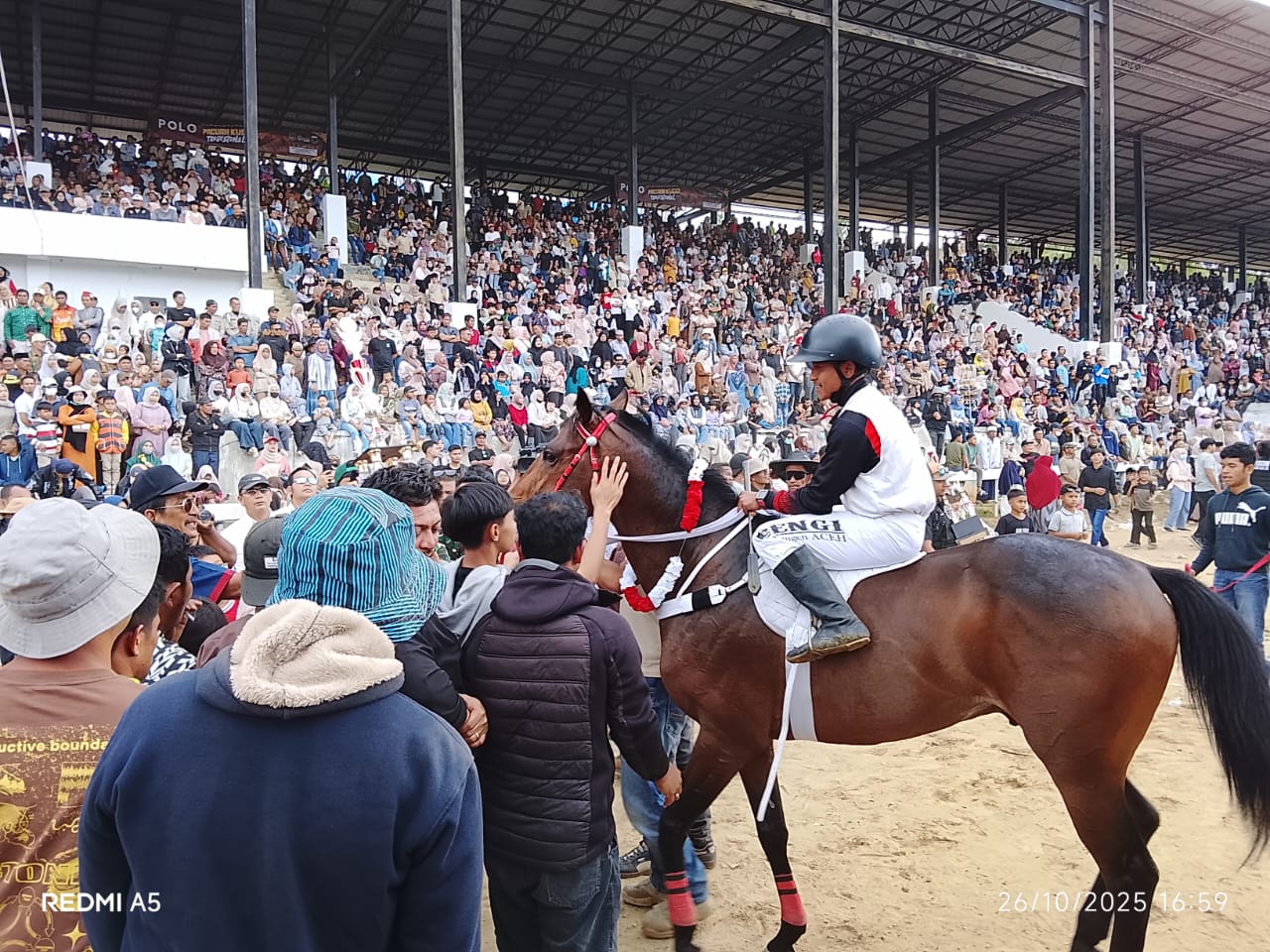 Blangkejeren-LintasGAYO.co : Suasana di lapangan pacuan tradisional Gayo Buntul Nege Gayo Lues begitu meriah, Minggu 26 Oktober 2025. Ribuan penonton dari berbagai pelosok memadati stadion untuk menyaksikan final pacuan kuda yang menjadi puncak acara tahunan ini.