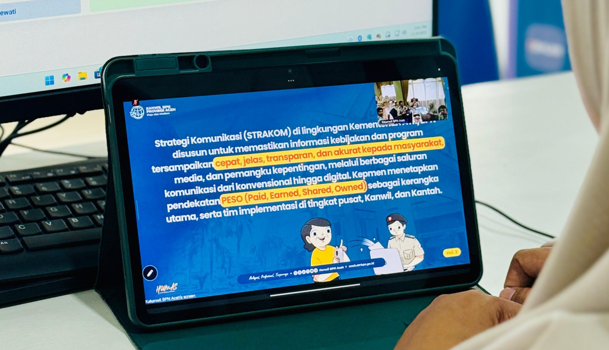 Komitmen tersebut tercermin dari partisipasi aktif dalam kegiatan Monitoring dan Evaluasi Strategi Komunikasi (Strakom) Tahun 2025 yang dilaksanakan oleh Kantor Wilayah BPN Provinsi Aceh secara daring, Senin 3 November 2025.