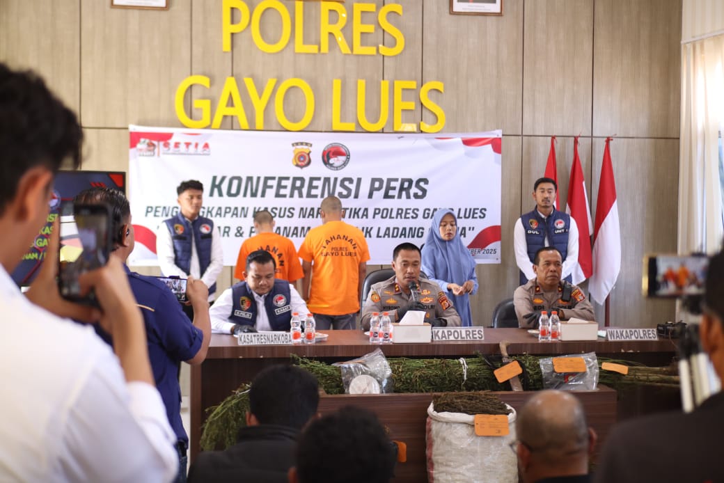 Kapolres Gayo Lues, AKBP Hyrowo, S.I.K., dalam konferensi pers (3/11/2025) menjelaskan, pengungkapan ini berawal dari laporan masyarakat pada 27 Oktober 2025. Satresnarkoba Polres Gayo Lues berhasil mencegat AR (35, ibu rumah tangga) dan JA (19, pelajar) di Jalan Lintas Gayo Lues – Aceh Tengah, dekat Kafe Puncak Godang, Desa Pantan Cuaca. Dari tangan keduanya, disita 16,5 kg ganja kering yang akan diedarkan ke Aceh Tengah dan Bener Meriah.