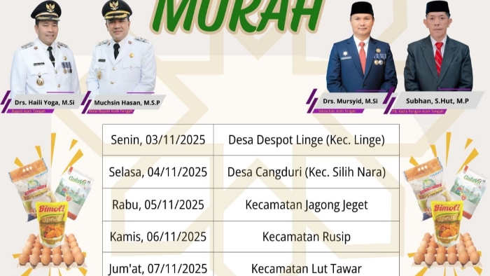 “Informasi di atas dapat berubah sewaktu-waktu, namun kami mengajak masyarakat untuk terus memantau akun media sosial resmi Dinas Pangan Aceh Tengah. Mari kita manfaatkan momentum GPM ini untuk menekan pengeluaran rumah tangga dan mendukung upaya pemerintah dalam menjaga stabilitas ekonomi daerah,” tutupnya.