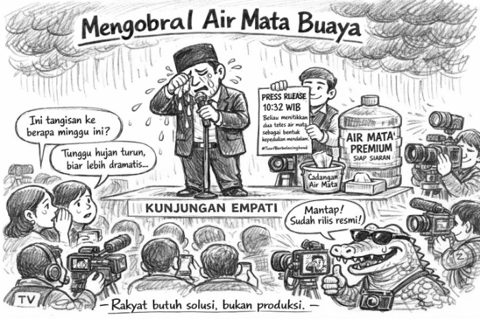 Mengobral air mata buaya hanya akan menggerus wibawa. Rakyat bisa memaafkan kesalahan, tetapi sulit memercayai drama yang berulang. Sebab di balik setiap tetes yang terlalu sering jatuh, selalu ada pertanyaan: ini empati, atau sekadar strategi pencitraan yang disutradarai dengan rapi?