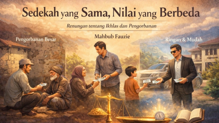 Di hadapan manusia, angka sering menjadi ukuran. Rp50.000 dari siapa pun terlihat sama: sama jumlahnya, sama bentuknya, sama pula cara memberikannya. Namun di hadapan Allah SWT, angka itu bisa memiliki makna yang sangat berbeda. Ia tidak lagi sekadar nominal, melainkan cermin dari hati, pengorbanan, dan keikhlasan.