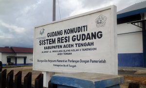Takengon-LintasGayo.co : Gudang Komuditi Sistem Resi Gudang kopi yang berlokasi di Paya Ilang Takengon Aceh Tengah sejak 2 bulan ini sudah mulai berjalan