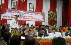 TAKENGON-LintasGayo.co: Mengahiri pidato perdananya selepas dilantik Gubernur Aceh menjadi Bupati Aceh Tengah, Shabela Abubakar meminta izin menutup pidatonya dengan puisi H Ibrahim