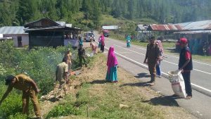 TAKENGON-LintasGAYO.co : Organisasi Pembinaan Kesejahteraan Keluarga (PKK) Kecamatan Linge, Kabupaten Aceh Tengah melakukan kegiatan gotong royong memungut, mengumpulkan dan membakar sampah plastik