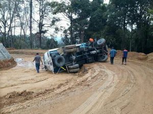 TAKENGON-LintasGAYO.co : Truk tangki bermuatan BBM jenis solar terguling di Jalan Takengon-Isaq, tepatnya di kawasan Bur Lintang, Jum’at 29 September 2017 pagi