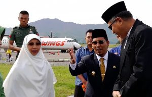 Bener Meriah-LintasGayo.co-Bupati Bener Meriah Ahmadi dan para Muspida menjemput langsung kedatangan wakil Gubernur Aceh Ir Nova Iriansyah di Bandara Rembele, Redelong, Senin