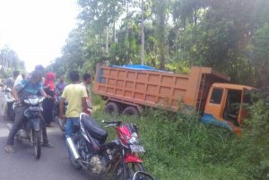 Rem Blong, Truk Pengangkut Batu Terperosok di Jalan Eks PT KKA