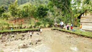 TAKENGON-LintasGAYO.co : Anggota Pramuka Kwarcab Aceh Tengah tampak turun membantu membersihkan longsor yang terjadi di Dusun Hijrah dan Dusun Bata, Kampung Pinangan,