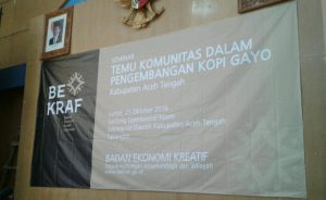 Takengon-LintasGayo.co : Badan Ekonomi Kreatif (Bekraf) menggelar seminar Temu Komunitas dalam Pengembangan Kopi Gayo di Opsroom Setdakab Aceh Tengah, Jum’at 21 Oktober