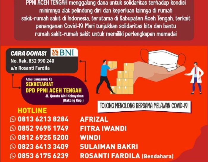 Takengon-LintasGAYO.co : Persatuan Perawat Nasional Indonesia (PPNI) Aceh Tengah menggalang dana sebagai bentuk solidaritas terhadap kondisi minimnya alat pelindung diri (APD) dan