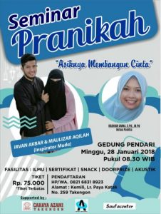 TAKENGON-LinasGAYO.co : Sebagai lembaga yang bergerak di bidang pendidikan, Amna Operation akan menggelar acara seminar pra nikah pada Minggu, 28 Januari 2018
