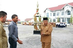 REDELONG-LintasGAYO.co : Pelaksana Tugas (Plt) Bupati Bener Meriah Drs. H. Rusli M Saleh menerima piala bergilir juara umum pacuan kuda tradisional pada
