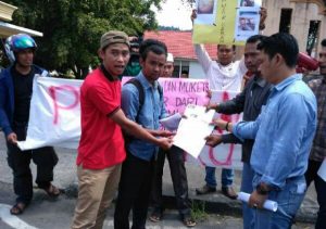 TAKENGON-LintasGAYO.co : Salah seorang anggota DPRK Aceh Tengah, Edi Kurniawan yang menerima aspirasi dari Pemuda-Pemudi Tanoh Gayo saat melakukan aksinya terkait kasus