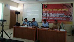 TAKENGON-LintasGAYO.co : Kantor Wilayah Kementerian Hukum dan HAM Aceh gelar kegiatan Work Shop Kekayaan Intelektual Bagi Pelaku Usaha di Takengon, Senin, (13/3/2017).